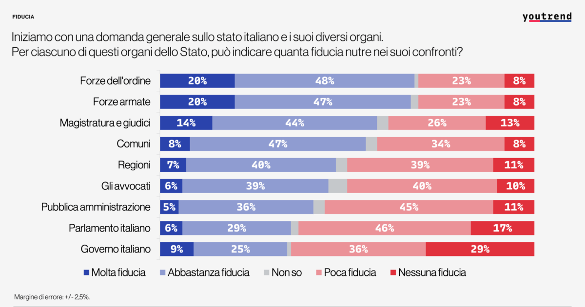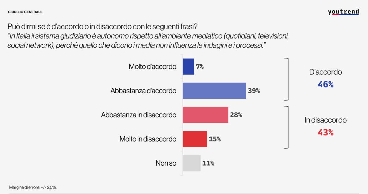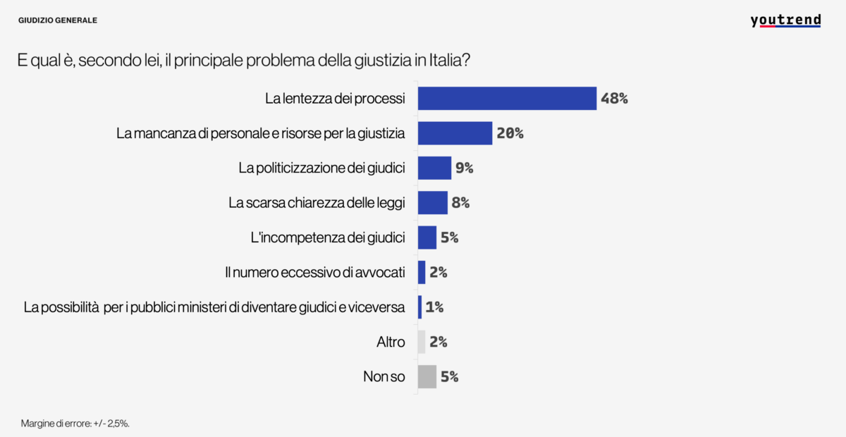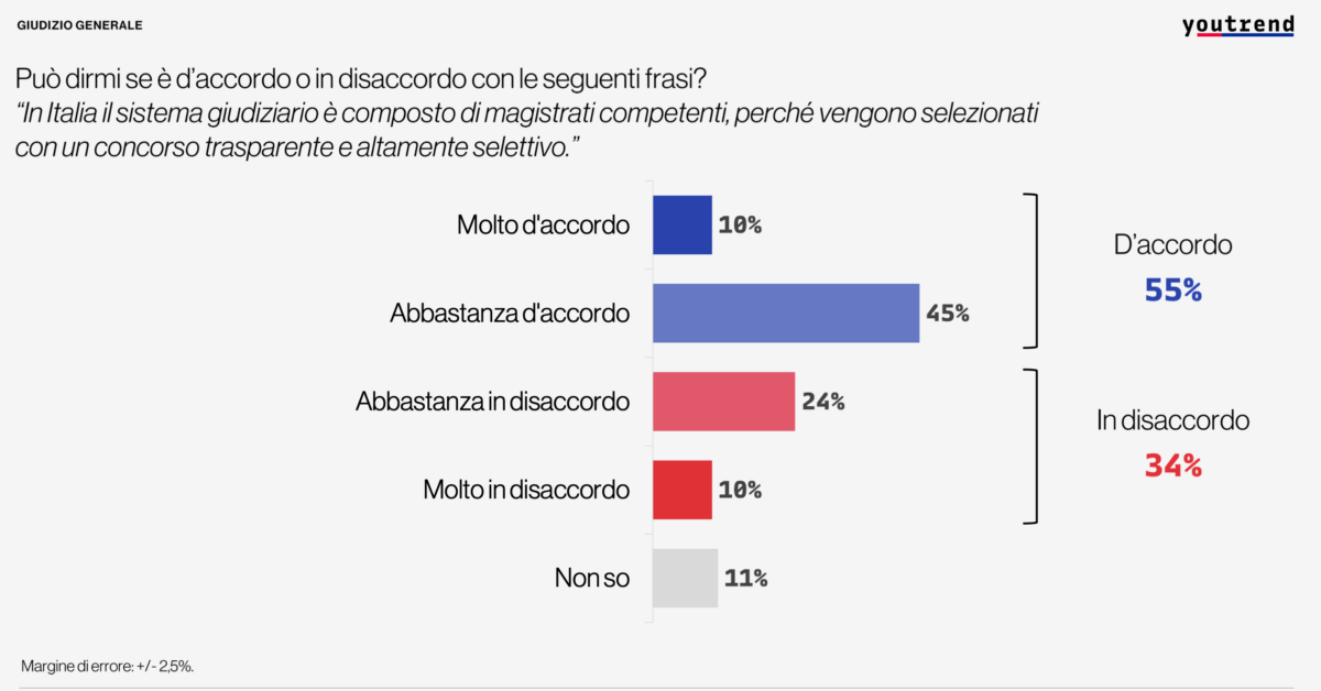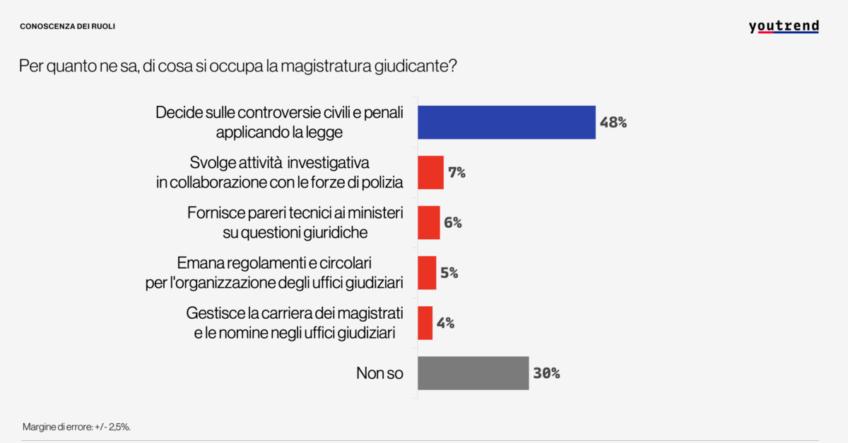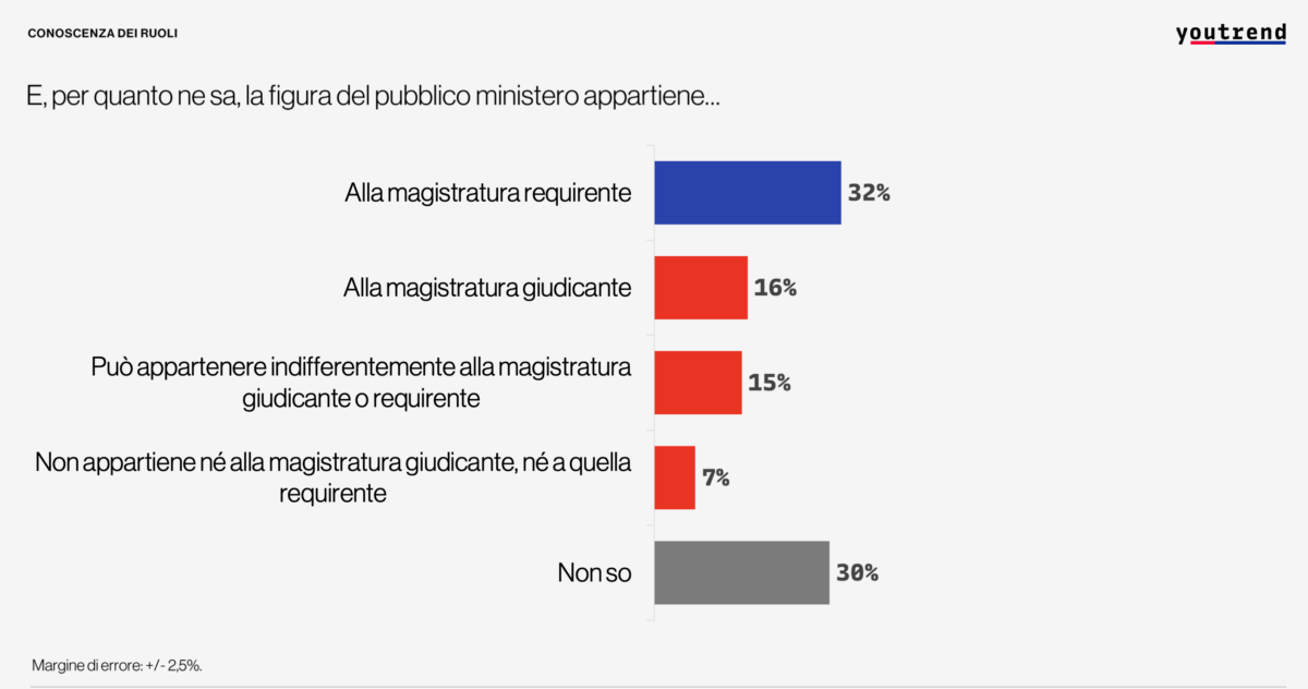 Il dettaglio del sondaggio di YouTrend per La Magistratura: la fiducia nei giudici, le preoccupazioni sulla durata dei processi e la poca conoscenza dei ruoli all’interno della magistratura.