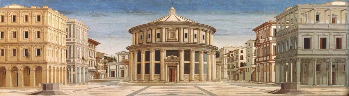 In foto: Leon Battista Alberti (attribuito a), La città ideale, Galleria Nazionale delle Marche, Urbino